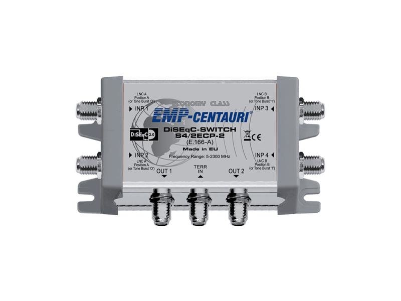 Satelitní relé DiSEqC EMP S4/2ECP-2, 4x SAT, 1x Terr, 2 výstupy