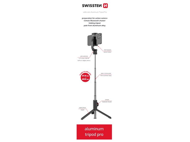 Elegantní selfie tyč ALUMINUM TRIPOD PRO vyrobená z kvalitních materiálů je vybavena tripodem, dálkovým bluetooth ovládáním a závitem pro připevnění GOPRO.