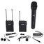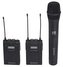 - Set se skládá z ručního mikrofonu, bezdrátového přijímače s klopovým mikrofonem a nechybí ani samostatný vysílač