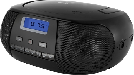 LCD, 2x1 W, Rádio s CD,CD-R/RW, PLL FM tuner , AUX-in jack, teleskopická anténa, 20 nastavitelných FM stanic, Bateriové / síťové napájení