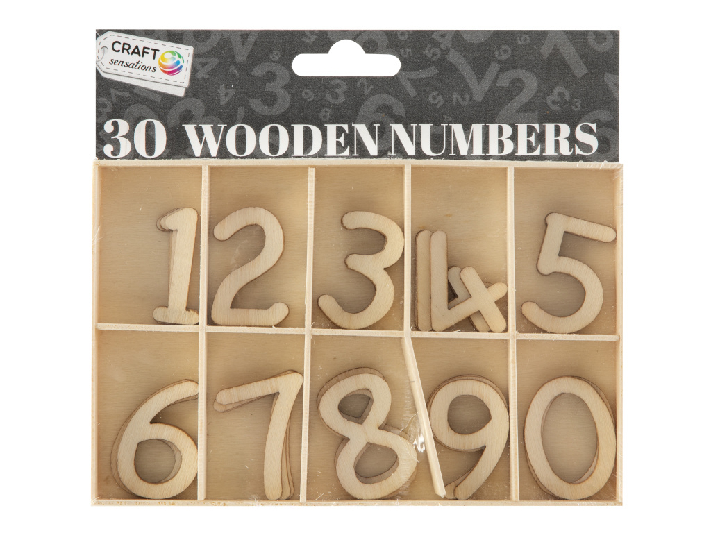 - Obsah balení: 30 dřevěných číslic (3 sady, čísla 0-9)