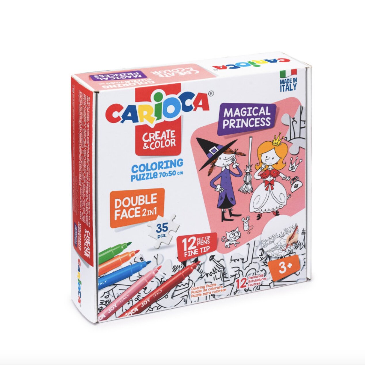 Vstupte do světa barev a skládání s Carioca omalovánkovým puzzle! Tato sada obsahuje puzzle s motivy princezen a 12 barevných fixů, které přinášejí zábavu a kreativitu na novou úroveň. Ideální dárek pro menší děti.
