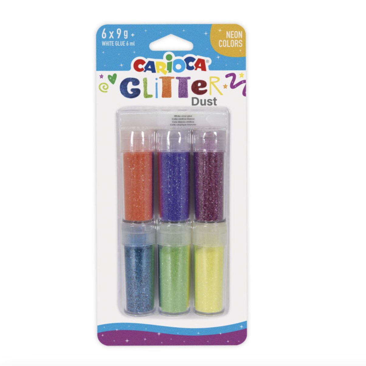 Carioca Sada 6 kusů Glitterů a lepidlo Barevná varianta: Neonové