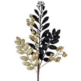 Gałązka złoto-czarne listki zdobione brokatem dł. 68cm, Ziemia Obiecana
