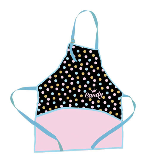 Zástěrka na výtvarnou výchovu z omyvatelného materiálu s nastavitelnou šňůrkou a dvěma kapsami. Rozměr 440x500 mm.