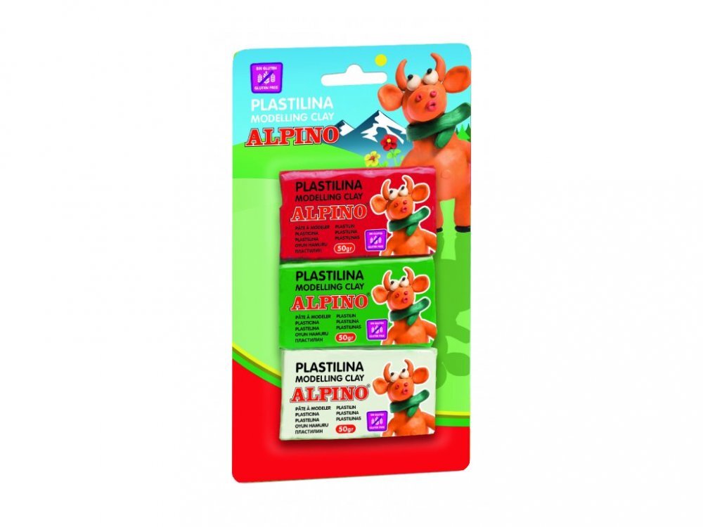 Alpino modelovací hmota 3ks á 50 gr.balení 3ks modelovací hmoty po 50gr. různé barvyflexibilní, plastická, jemná a pružná plastelínajasné barvy, které lze míchat, bez zápachu, bezlepková, vhodná pro všechny ruční práceUpozornění: Nevhodné pro děti do 3 let. Obsahuje malé části. Tento obal si uschovejte pro další použití.