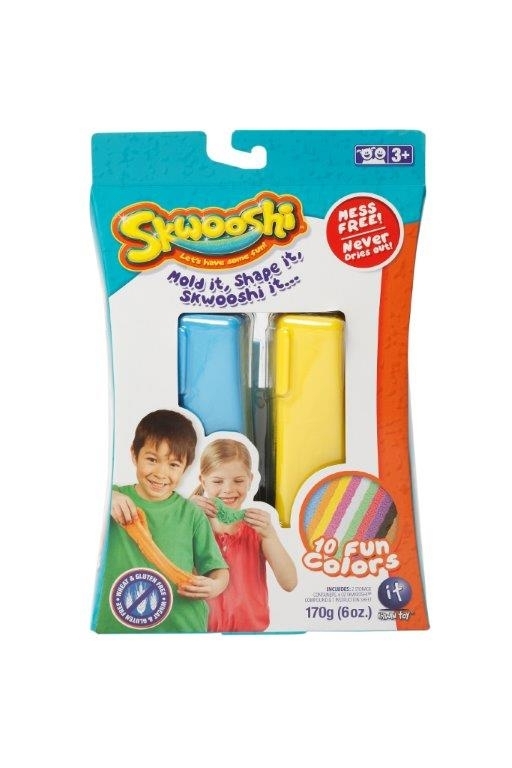 Skwooshi to magiczna, puszysta, masa plastyczna do kreatywnej zabawy. Jest przeznaczona dla dzieci w wieku przedszkolnym i wczesnoszkolnym (zarówno dla chłopców, jak i dziewczynek). Skwooshi jest łatwa do formowania i idealna także dla młodszych dzieci, ponieważ nie wymaga wysiłku przy wkładaniu do foremki. Specjalne właściwości Skwooshi sprawiają, że można bawić się w przesuwanie jej po płaskich powierzchniach, wycinać idealne kształty, a ponieważ jest lekka, piankowa zachowuje idealne kształty. Zgniatanie pianki Skwooshi to niesamowita przyjemność. Niewątpliwą zaletą pianki jest fakt, że nigdy nie wysycha i nie zostawia okruchów. Skwooshi jest bezpieczna. Hipoalergiczna, nie zawiera pszenicy i glutenu.