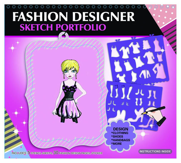 Skicák módní návrhářka obsahuje šablony, nálepky, návody a prázdné papíry s předtištěnými vzory pro vytváření těch nejzajímavějších módních kreací.