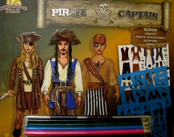Skicák piráti obsahuje šablony, nálepky, prázdné papíry s předtištěnými vzory a návody pro tvorbu skvělých pirátských kreací. Součástí balení jsou i barevné pastelky.