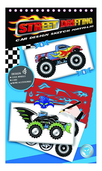 Skicák návrhy automobilů obsahuje šablony, nálepky, prázdné papíry s předtištěnými vzory a návody pro tvorbu úchvatných návrhů nejrůznějších automobilů.