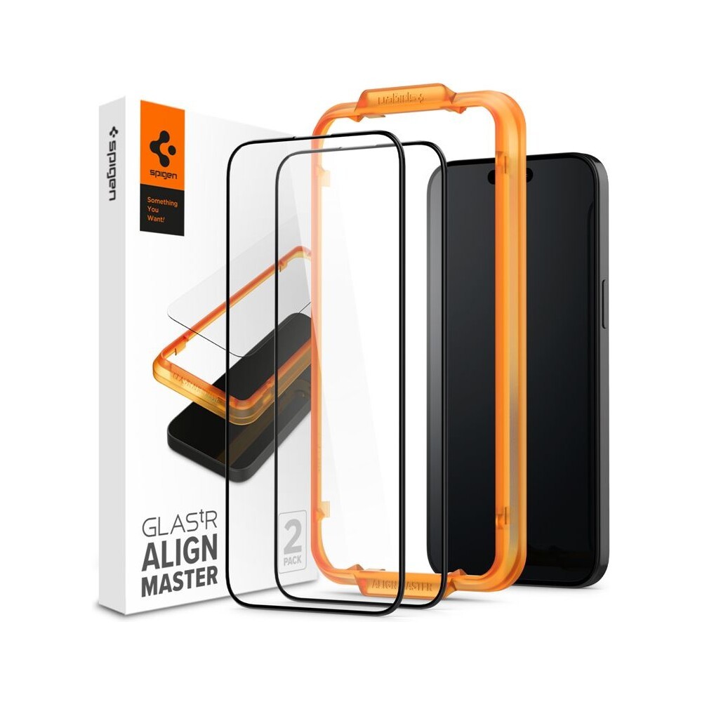 Spigen Glass tR AlignMaster 2 Pack tvrzené sklo iPhone 15 Pro černé