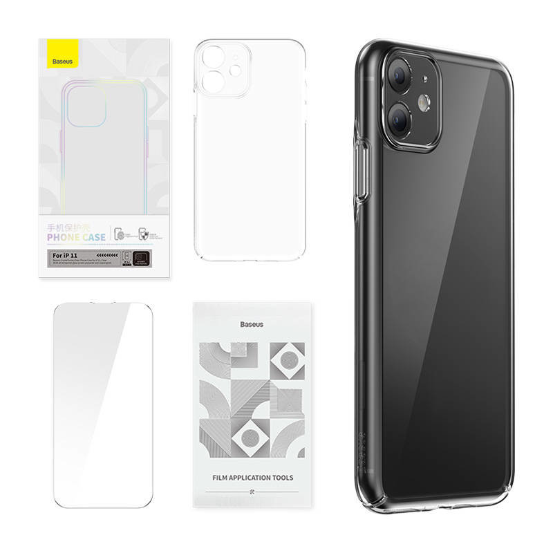 Pouzdro Baseus Crystal Series Clear pro iPhone 11 (průhledné) + tvrzené sklo + čisticí sada