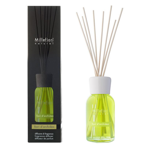 Designový skleněný difuzér Natural značky Millefiori Milano s bílým keramickým uzávěrem se hodí především do menších prostor jako je koupelna, toaleta nebo kuchyně.Difuzér o objemu 100 ml obsahuje 8 ks bambusových tyčinek, ze kterých se vůně uvolňuje do prostoru. Čím větší počet tyčinek do nádobky ponoříte, tím silněji bude vonná esence cítit. Intenzitu můžete zvýšit i tím, že zhruba jednou za týden vyjmete tyčinky z difuzéru a otočíte je namočenou částí vzhůru. Některé vonné esence mohou bambusové tyčinky přiměřeně zabarvit.Náplň vydrží přibližně 5 až 6 týdnů v závislosti na teplotě a větrání místa, kam difuzér umístíte. Po vyprchání původní náplně vypláchněte difuzér teplou vodou a nalijte novou náplň. Při změně náplně v difuzéru nebo po jednom roce Vám doporučujeme vyměnit i tyčinky.Natural můžete věnovat jako praktický a přitom luxusní dárek. Balení obsahuje jeden kus difuzéru s náplní.Vůně: Květy orchideje.