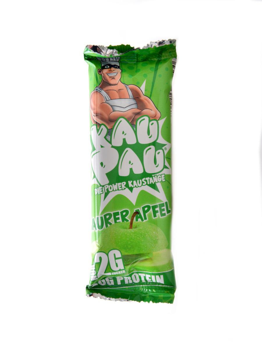 KauPau je první proteinový snack (se syrovátkovým proteinem) na trhu. Obsahuje pouze 2 gramy cukru a neuvěřitelných 20 gramů bílkovin na tyčinku a má konzistenci žvýkacích bonbónů . K dispozici v příchutích kyselého jablka nebo kyselého lesního ovoce. Jedinečné složení, kvalita surovin a vynikající osvěžující chuť je něco co u proteinových tyčinek neznáte.. Tyčinka je bez polevy a je vhodná pro velmi rychlé a chutné doplnění bílkovin.