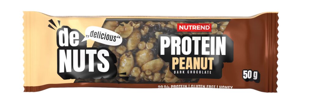 Objevte dokonalou kombinaci oříšků, medu a pravé hořké čokolády. Tyčinka nabitá energií z přírody, vyrobená z těch nejkvalitnějších surovin. Pochutnají si na ní jak děti, tak dospělí.Křupavá tyčinka hravě doplní energii i potřebné bílkoviny, které podporují optimální stav kostí. Je vhodná pro každého, kdo hledá ideální svačinu zapadající do zdravého životního stylu.Složení: arašídy 40,5 %, glukózový sirup, hořká čokoláda 12 % (kakaová hmota, cukr, kakaové máslo, kakao, emulgátory sójový lecitin a polyglycerolpolyricinoleát, vanilkový extrakt), sójový extrudát (sójový proteinový izolát, tapiokový škrob, sůl), fruktóza, sójový extrudát s kakaem (sójový proteinový izolát, kakao), arašídová pasta 4,5 %, med 3 %, lískové ořechy, emulgátor řepkový lecitin, emulze karamel (aroma, barvivo E 150d). Může obsahovat stopy i jiných druhů ořechů a sezamu.