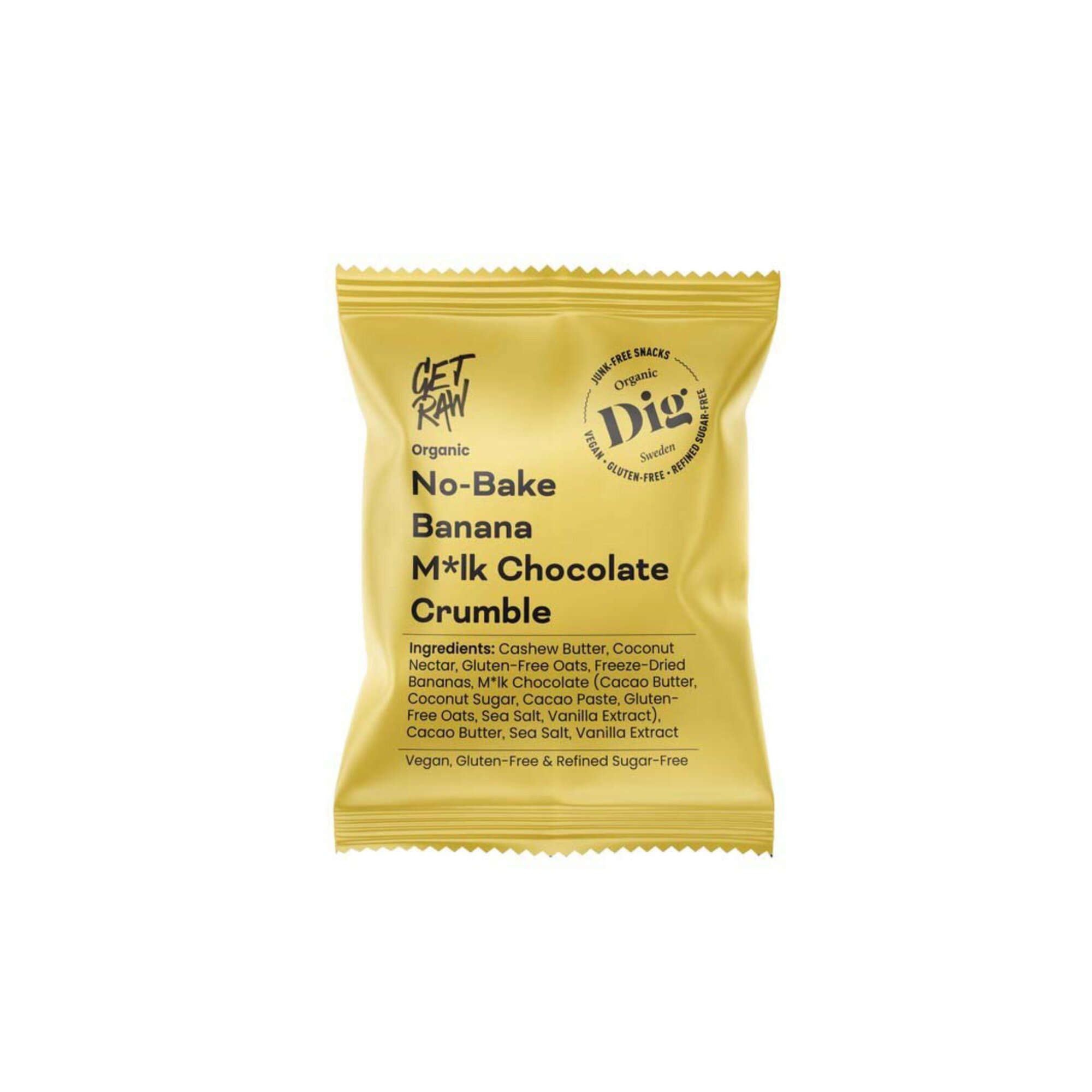 KEŠU máslo, kokosový sirup, bezlepkové OVESNÉ vločky, lyofilizované banány 8 %, světlá čokoláda 6 % (kakaové máslo, kokosový cukr, kakaová hmota, bezlepková OVESNÁ mouka, mořská sůl, vanilkový extrakt, obsah kakaa 55 %), kakaové máslo, mořská sůl, vanilkový extrakt. Může obsahovat stopy dalších skořápkových plodů a sezamu. produkt kontrolovaného ekologického zemědělství