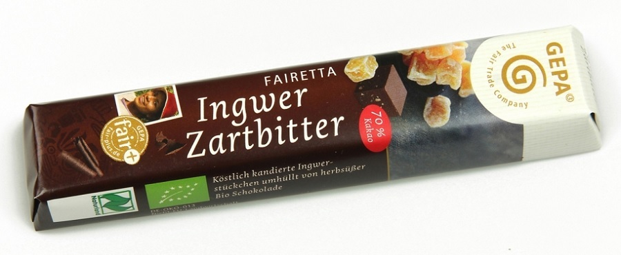 Gepa Bio hořká čokoládová tyčinka se zázvorem, 45 g