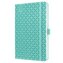 Diář "Jolie" v elegantní zelené aqua barvě je víc než jen zápisník - je to váš věrný společník pro každý den. Díky praktickému uzavírání na gumičku, papírové kapse a poutku na pero máte vše, co potřebujete, vždy po ruce.