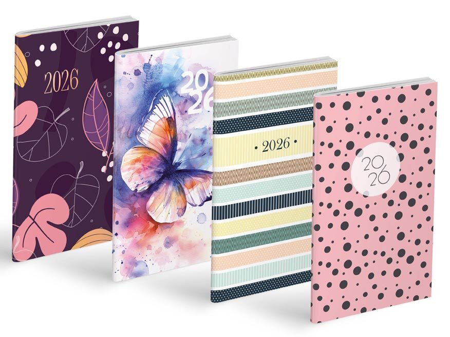 Tento týdenní diář na rok 2026 nabízí přehledné rozvržení týdnů, které usnadňuje organizaci vašeho času. Díky odolnému lesklému lamino povrchu je nejen praktický, ale také odolný vůči běžnému opotřebení. Diář je dostupný ve čtyřech různých motivech, takže si můžete vybrat ten, který nejlépe sedí vašemu stylu.