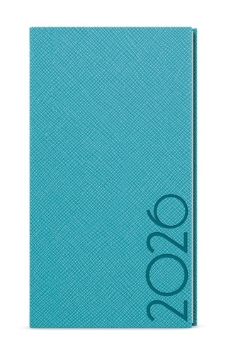 Kapesní týdenní diář v tyrkysové barvě se strukturovaným povrchem. Moderní doplněk do každé kapsy. Diář má velký prostor pro poznámky a plánování. číst celé
