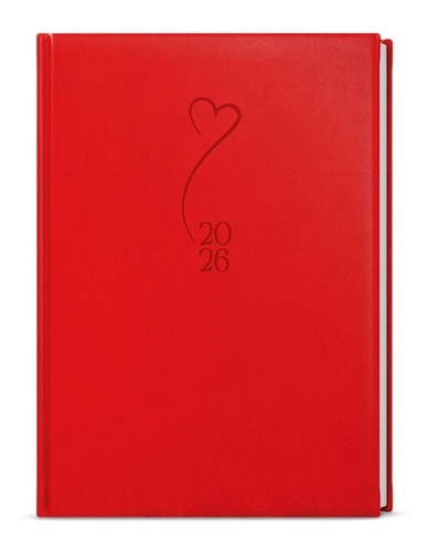 Týdenní diář v červené vivelle s krásnou ražbou s motivem Srdce. Diář v oblíbeném formátu s velkým prostorem pro poznámky a plánování.