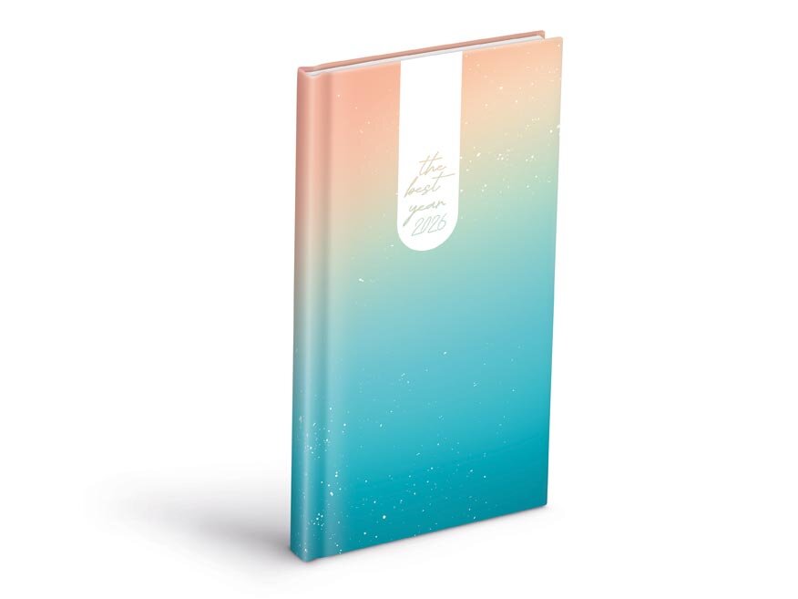 Týdenní diář 2026 upoutá jemným a moderním designem. Harmonický pastelový přechod z broskvové do tyrkysové barvy působí klidně, svěže a optimisticky - ideální pro pozitivní start do každého týdne.