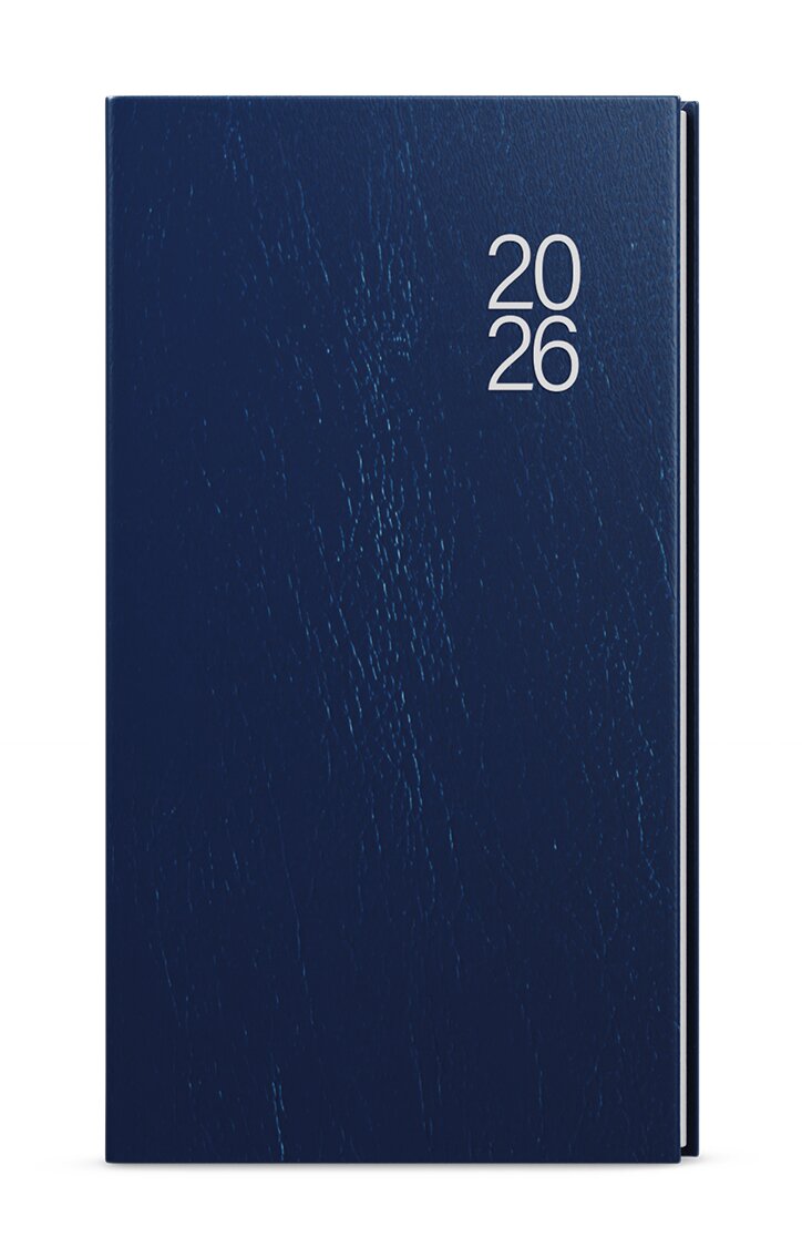 Kapesní týdenní diář v modré barvě je vyráběný z oblíbeného, jemně strukturovaného materiálu. Jedná se o praktický doplněk do každé kapsy, který díky velkému prostoru na poznámky, ulehčí Vaše plánování. pololesklý, jemně strukturovaný materiál, ražba roku přes stříbrnou pásku, šitá vazba V8, stužka, perforované rožky, ofset, 70g/m2