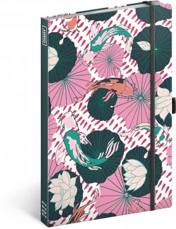 Šestijazyčný týdenní diář s uzavíráním na gumičku obsahuje přehled mezinárodních svátků, seznam českých a slovenských jmen, přehled roku 2022 a 2023, adresář a kapsičku na zadní předsádce. Řádkové rozvržení s prostorem pro poznámky na každý den. Diář v pevných deskách s obrázkem ryb.