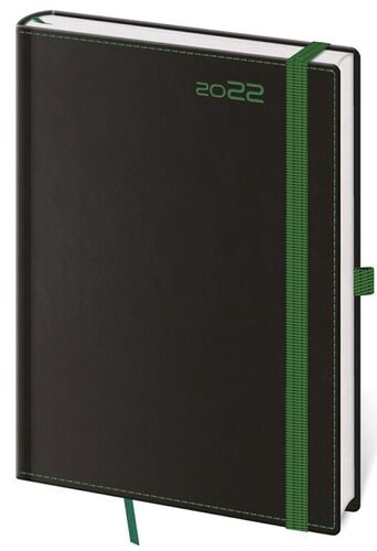 Diář 2022 týdenní A5 Black Green s poutkem na propisku