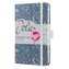 Stylový diář Jolie, je uzavíratelný na gumičku, vybavený praktickou papírovou kapsou na zadní straně a poutkem na pero.
