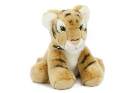 Plyšový tygr hnedý o rozměru cca 15 x 15 x 14 cm. Věk 0+ číst celé