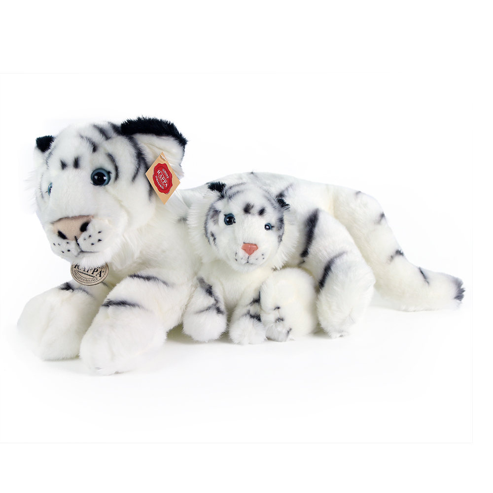 Nádherný plyšový tygr bílý v délce 38 cm, mláďátko má velikost cca 13 cm. Tygr je vyroben z vysoce kvalitní plyše a je tak součástí exkluzivní kolekce plyšových hraček RAPPA.