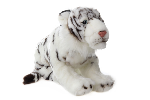 Plyšový bílý tygr o velikosti cca 45 x 28 x 12 cm (bez ocasu). Délka ocasu cca 24 cm. Věk 0+