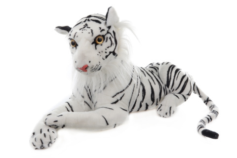 Plyšový bílý tygr o velikosti cca 50 x 28 x 14 cm (bez ocasu). Délka ocasu cca 36 cm. Věk 0+ číst celé