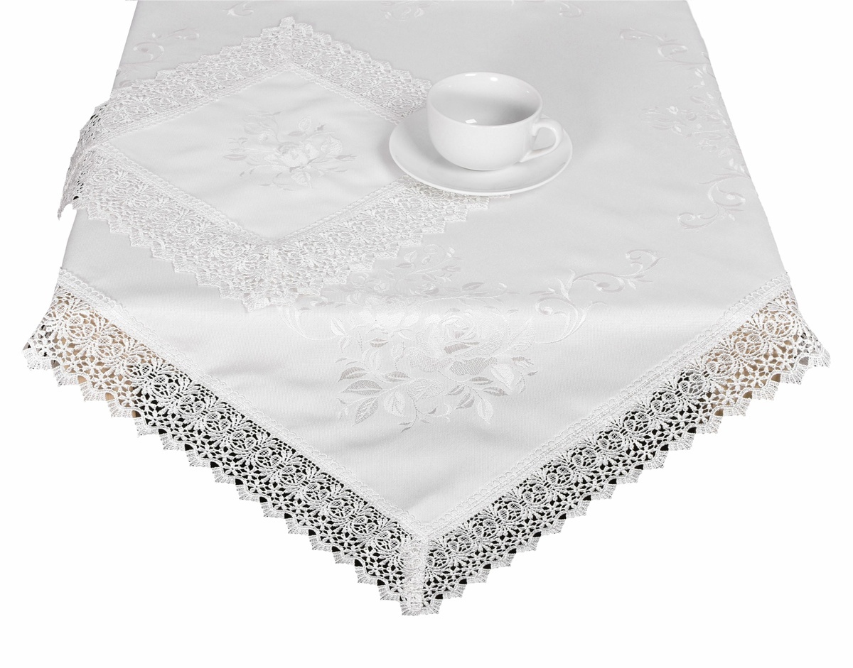 Ubrus celoroční, Růže s krajkou, bílý 40 x 90 cm