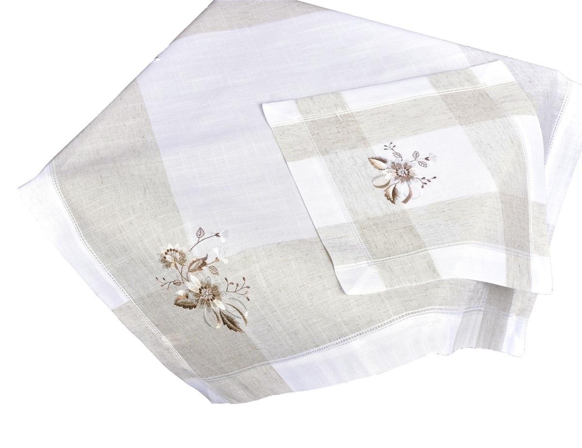Tento krásný vyšívaný polyesterový ubrus s příměsí lnu je dokonalou volbou pro ty, kdo chtějí svému interiéru dodat na eleganci a styl.