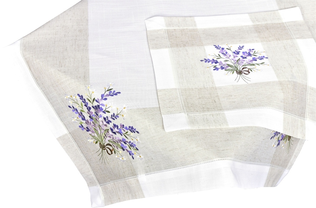 Ubrus celoroční, Levandule na lnu, bílo béžový 35 x 50 cm
