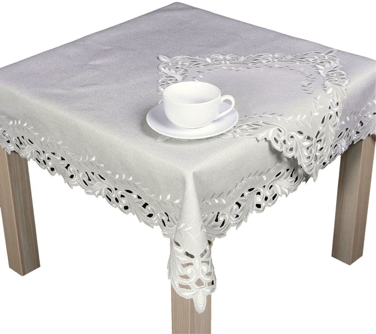 Vyšivaný ubrus s decentním vzorem je nádherným doplňkem v interiéru. Vytvoří příjemnou atmosféru a elegantně prostřený stůl.