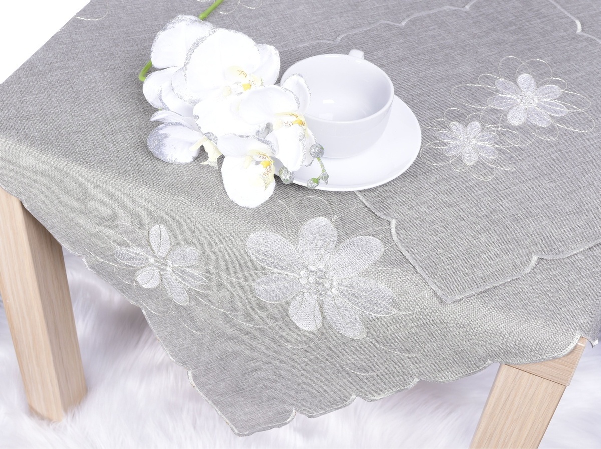 Ubrus celoroční, Šedo stříbrné květy vyšívané, šedý 30 x 45 cm