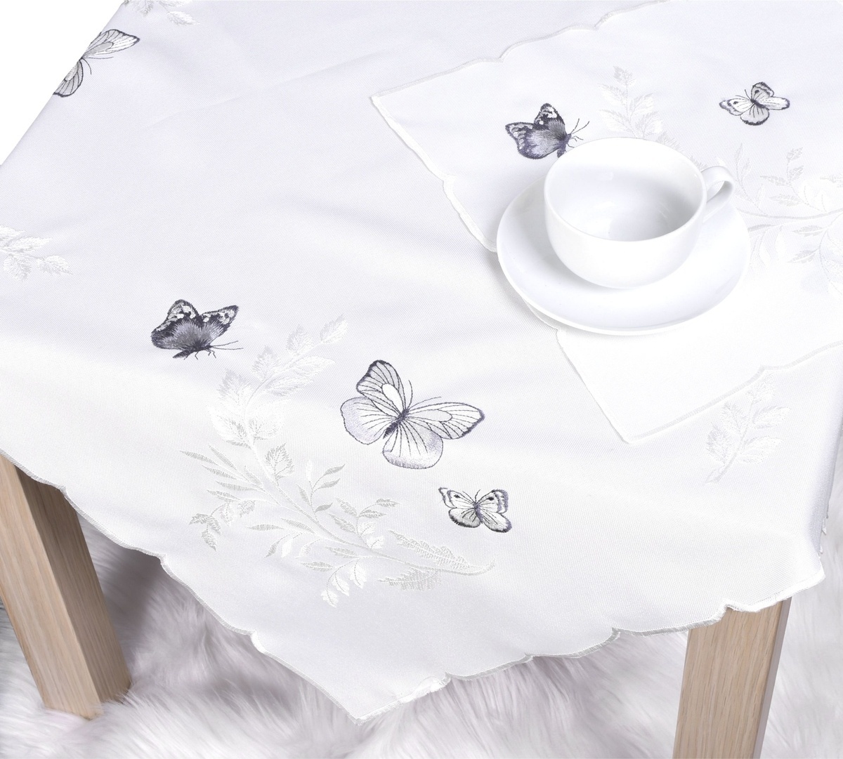 Ubrus celoroční, Motýlí a bílý list vyšívaný, bílý 40 x 90 cm