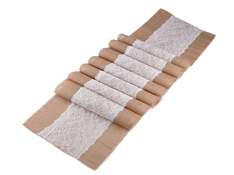 Běhoun / ubrus jutový s krajkou 30x270 cm - 1 ks - režná přírodní
