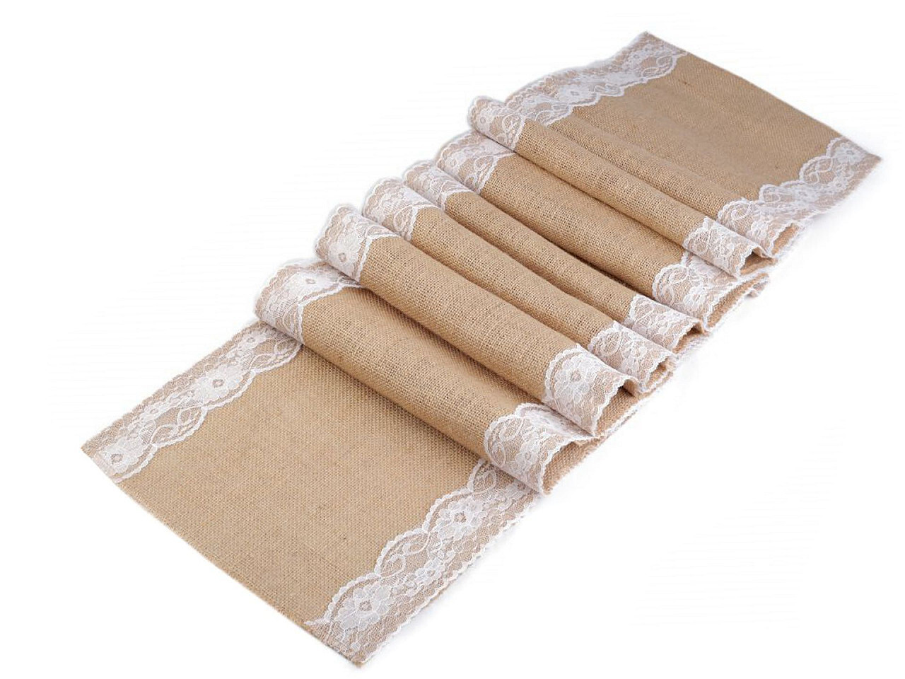 Běhoun / ubrus jutový s krajkou 30x300 cm - 1 ks - 1 režná přírodní