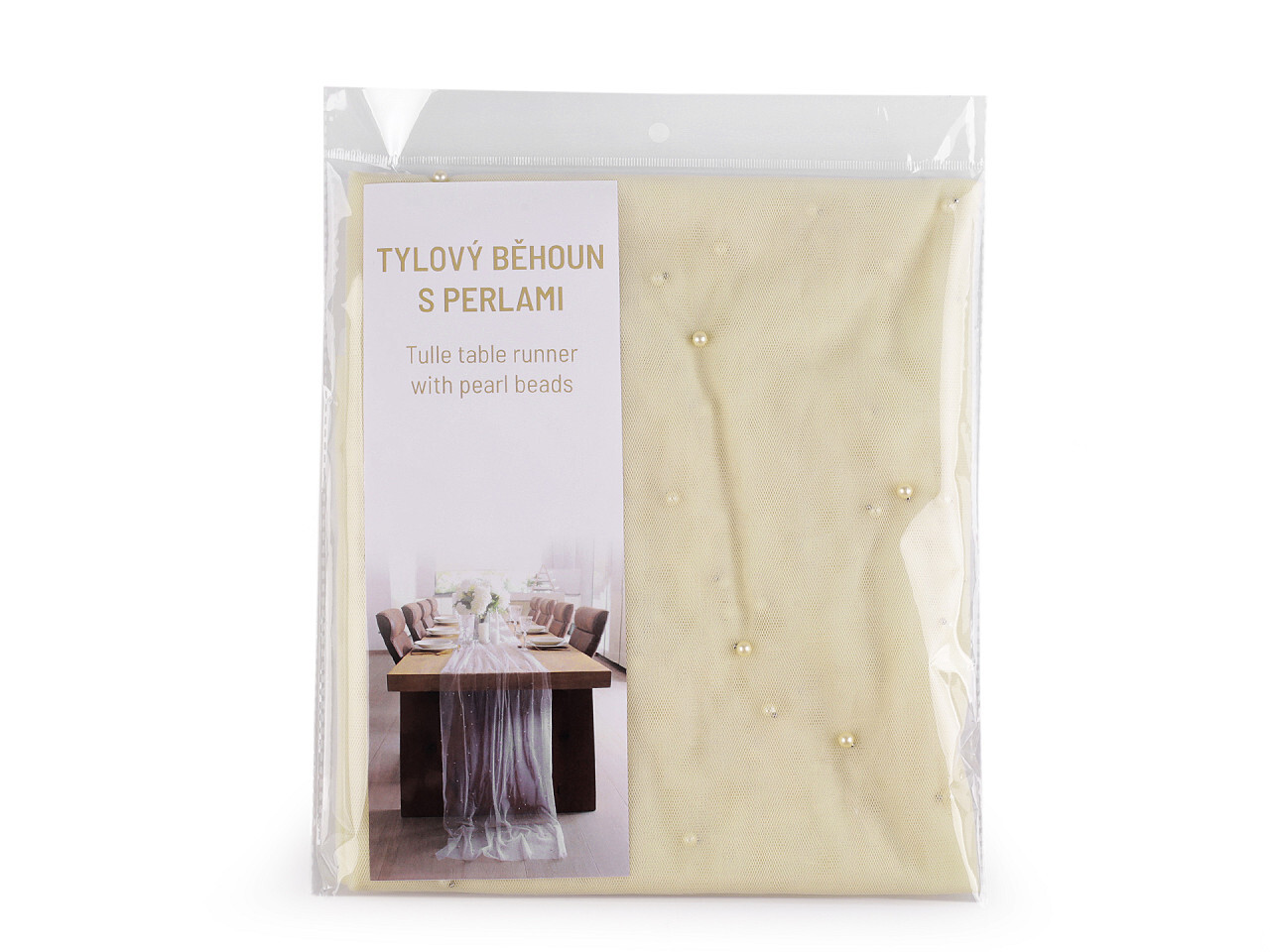 Tylový běhoun s perlami pro svatby a oslavy 0,8x3 m - 1 ks - 2 smetanová