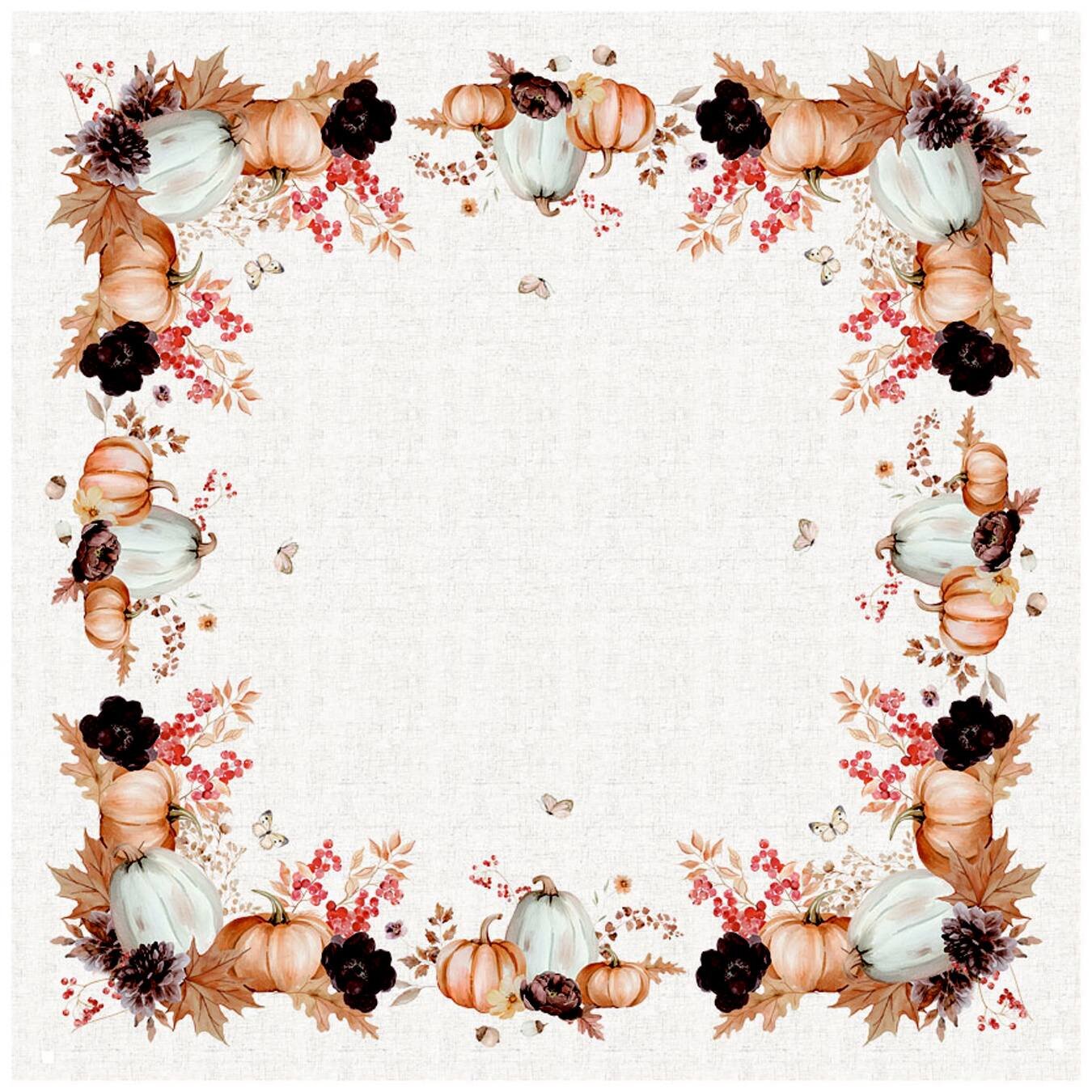 Stylový ubrus s podzimním motivem dýně o rozměru 85×85 cm je ideální dekorací pro jídelní stůl, konferenční stolek nebo komodu. Vnese do vašeho domova teplou a útulnou atmosféru. Podzimní nálada pro každý interiér
