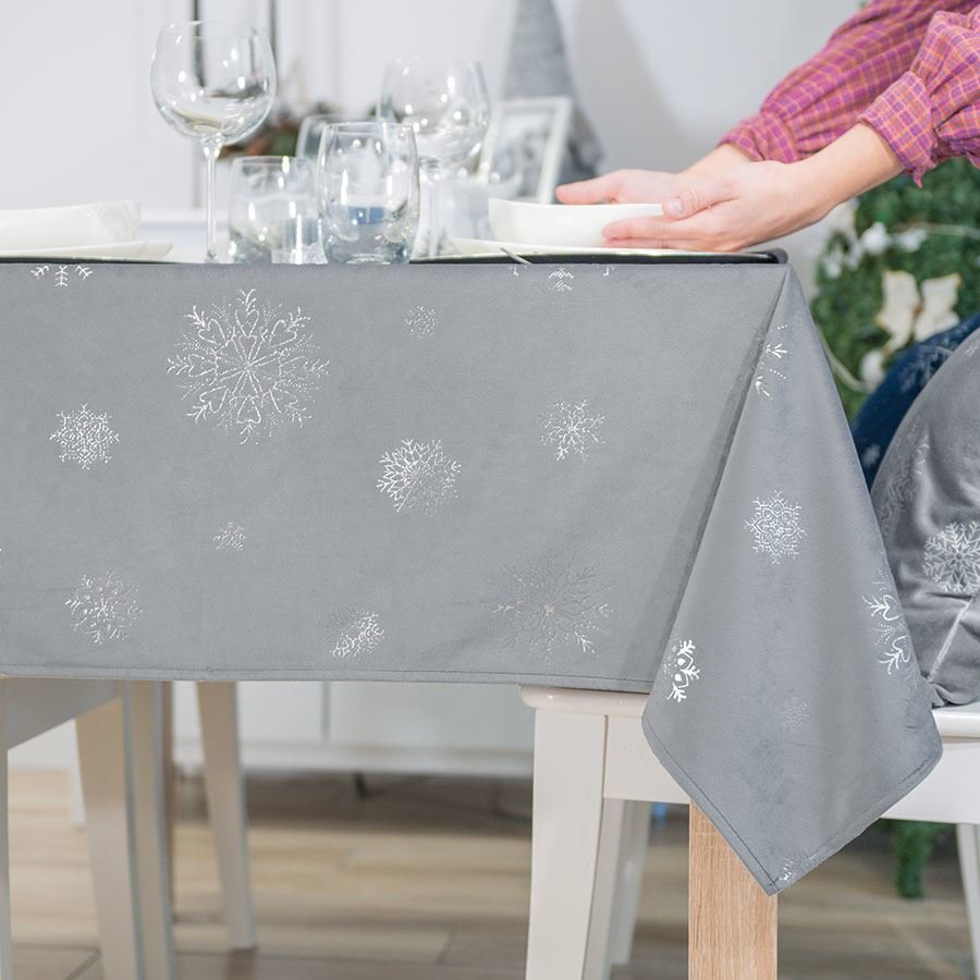 Vánoční ubrus na stůl SNOWFLAKE šedá/stříbrná 110x160 cm Mybesthome