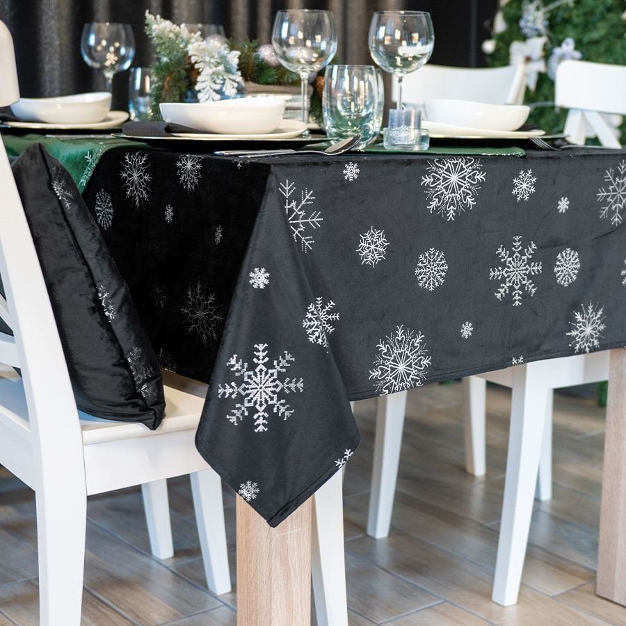 Vánoční ubrus na stůl SNOWFLAKE černá/stříbrná 110x160 cm Mybesthome
