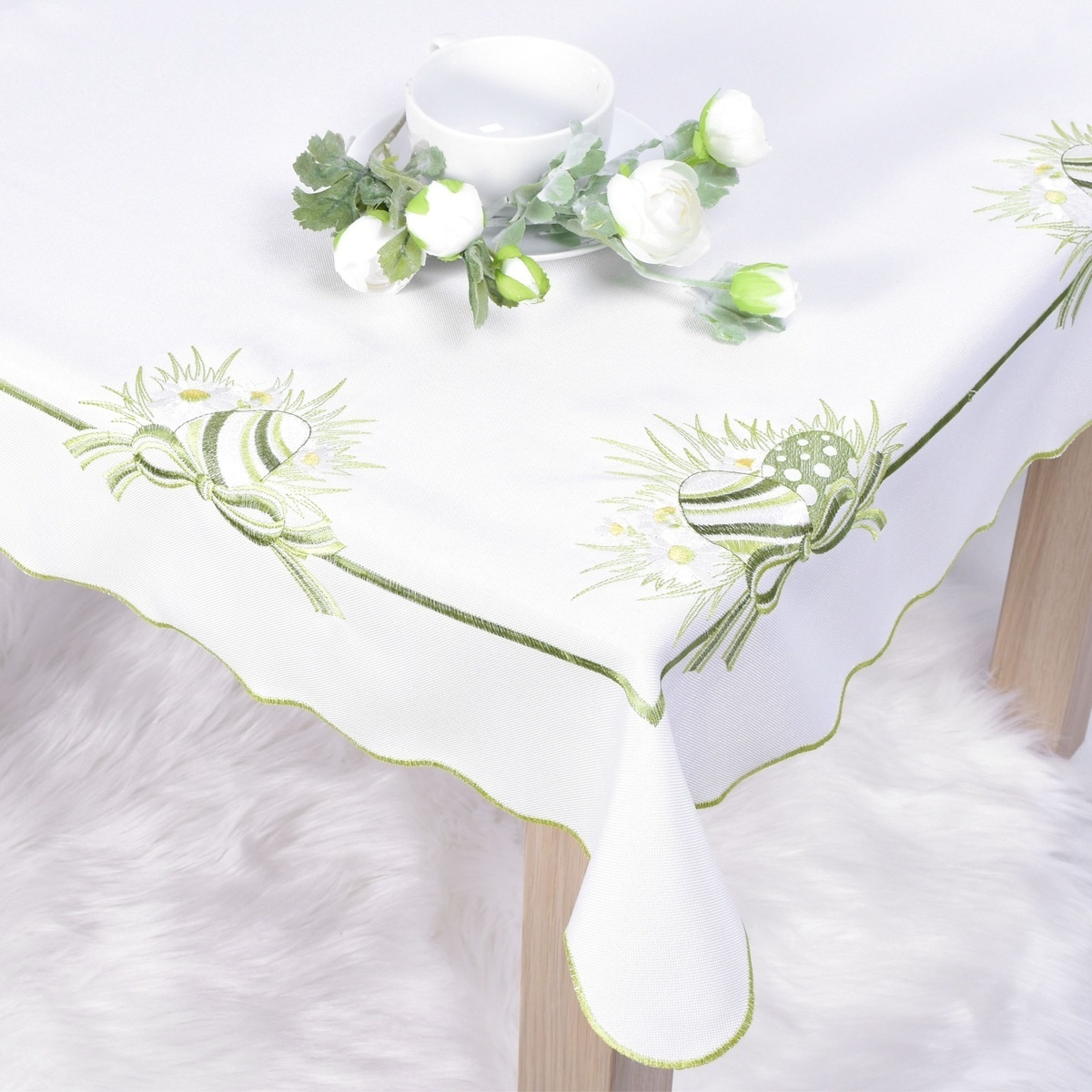 Tento nádherný velikonoční ubrus je ideální volbou pro každého, kdo si přeje přidat trochu jara a velikonoční atmosféry do svého domova. Tento vyšívaný ubrus s dezénem zajíčků zkrášlí každý stůl a vytvoří příjemnou a sváteční atmosféru.