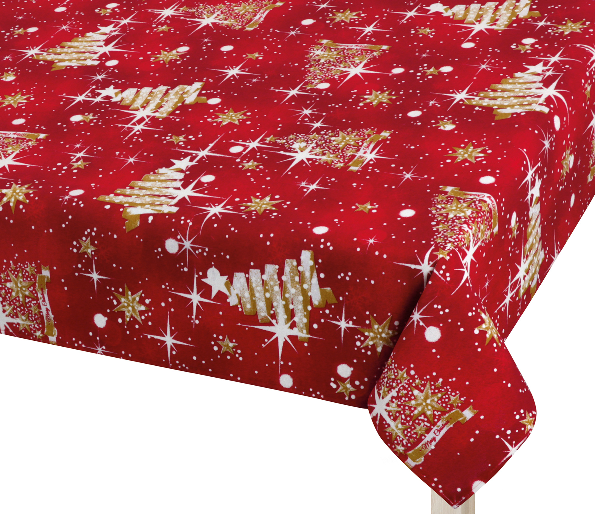 Ubrus VÁNOCE - Stromek vánoční zlatá, červená - 120x140 cm
