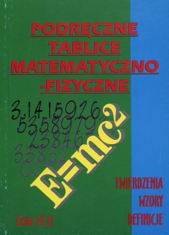 Podręczne tablice matematyczno - fizyczne Twierdzenia, wzory, definicje, 2002 r. :Pozycja została przygotowana z myślą o uczniach szkół średnich. Przejrzysty układ tablic ułatwi powtórzenie wiadomości z zakresu matematyki i fizyki na poziomie szkoły średniej.