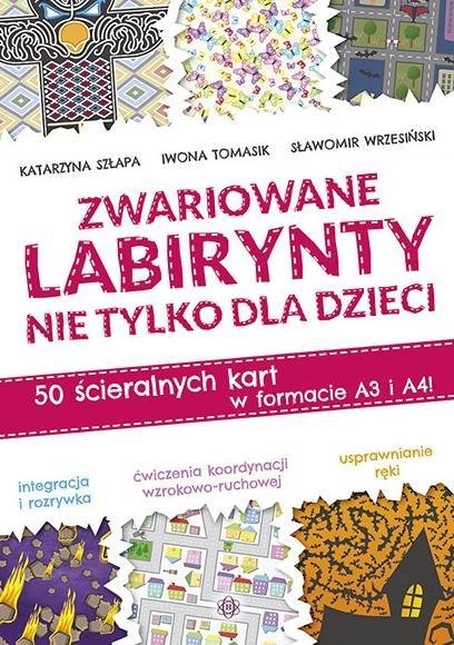 Zwariowane labirynty nie tylko dla dzieci to interaktywna publikacja pomocna w rozwoju percepcji wzrokowej, koordynacji wzrokowo-ruchowej, orientacji przestrzennej, koncentracji i w usprawnianiu ręki. Labirynty przeznaczone są zarówno dla dzieci (od 5. roku życia), jak i młodzieży oraz lubiących wyzwania dorosłych. Publikacja składa się z 50 labiryntów o różnorodnej tematyce i różnym stopniu trudności, a każdy z nich to prawdziwa przygoda: ucieczka przed wampirami, zabawa w chemika, pogoń za złodziejami czy spacerek po Nowym Jorku. Wszystkie labirynty zostały wydrukowane na kartach laminowanych, co umożliwia rozwiązywanie ich za pomocą flamastra, którego ślad można w każdej chwili zetrzeć i zacząć zabawę od nowa!